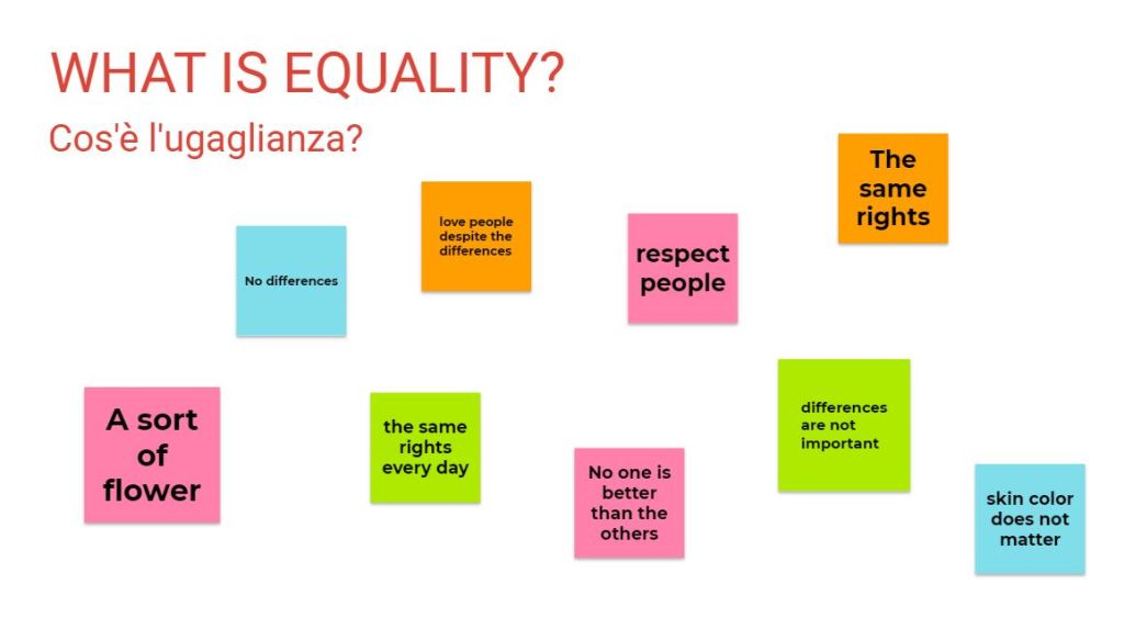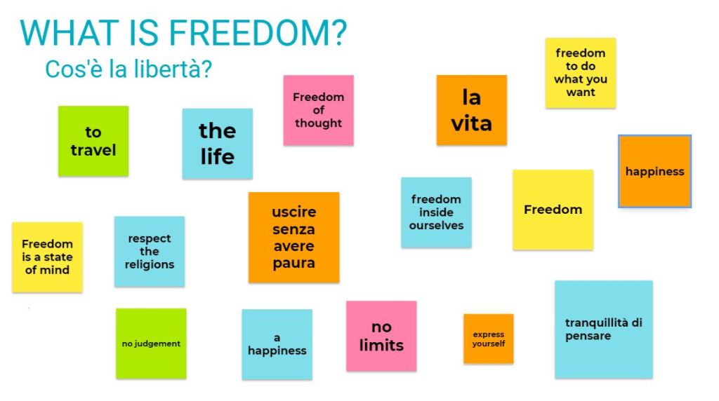 In the last lesson we talked about the European Union values. The students shared their own thoughts, opinions and knowledge about some of the values and we wrote them down together. What is freedom? What is peace? What is equality? It was very interesting to see their points of view and down below you can also see the result.