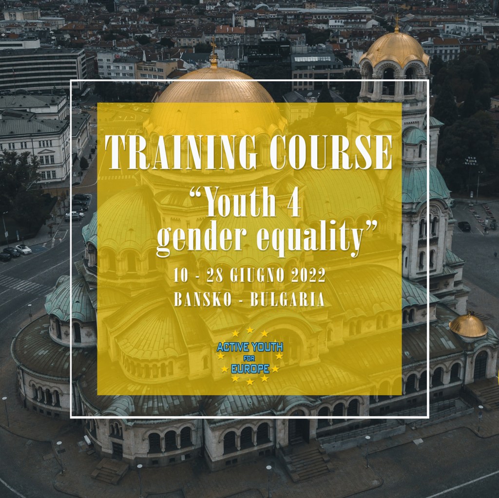 L’associazione “Active Youth for Europe” è alla ricerca di 3 partecipanti residenti in Italia per il “Training Course Youth 4 Gender Equality” che si terrà a Bansko – Bulgaria, dal 10 al 18 Giugno 2022.