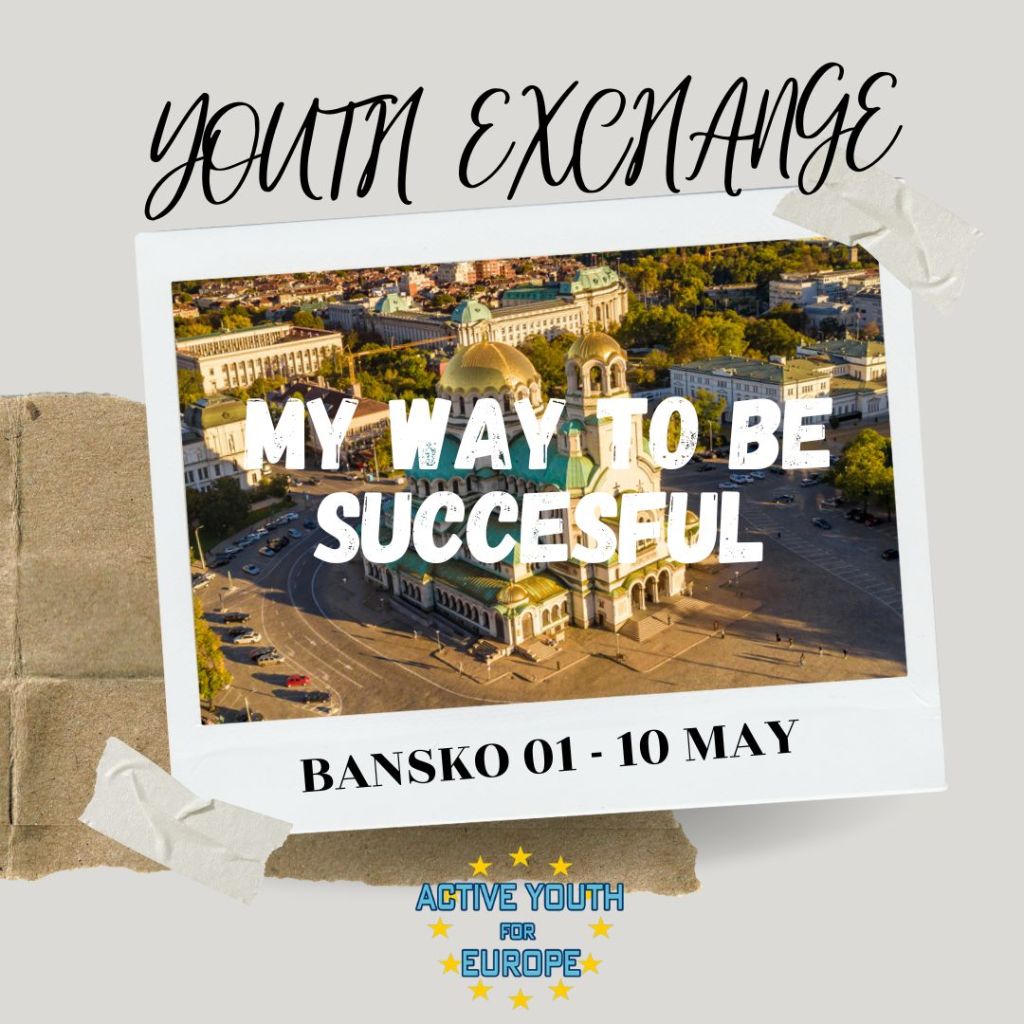 L’associazione “Active Youth for Europe” è alla ricerca di 6 partecipanti + 1 group leader residenti in Italia per lo Youth Exchange “MY WAY to BE SUCCESFUL”” che si terrà a Bansko – Bulgaria, dal 1 al 10 Maggio 2023.