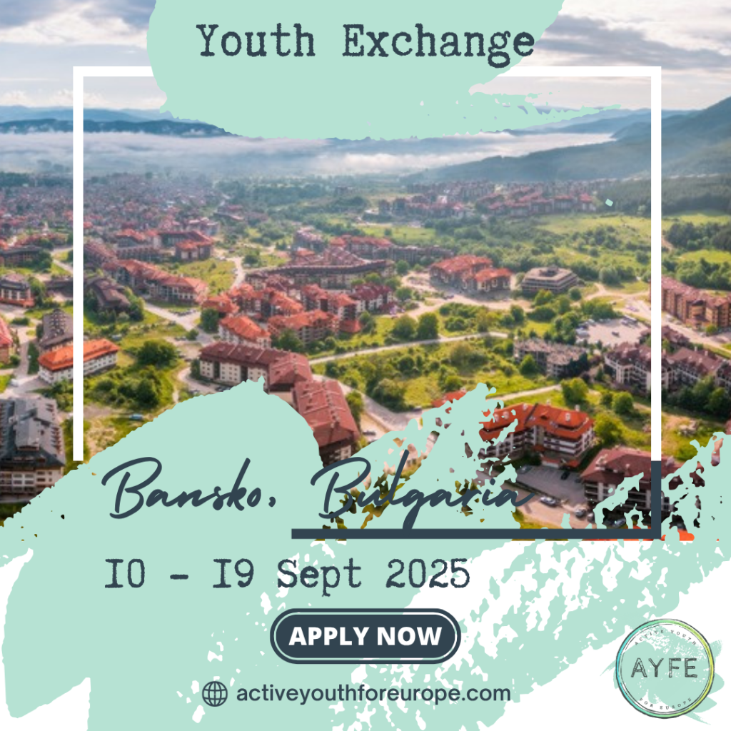 L’associazione “Active Youth for Europe” è alla ricerca di 6 partecipanti + 1 group leader residenti in Italia per lo Youth Exchange “ Mission Youth Mental Health” che si terrà a Bansko, Bulgaria, dal 10 al 19 Settembre 2025.